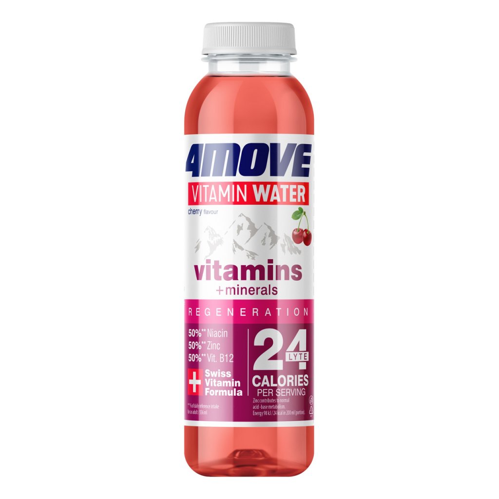 - 4Move Vitamin Water Minerals - nesycený nápoj s příchutí višní a s přídavkem vitamínů, zinku a jódu. Pasterizováno. Vyrobeno z ovocného džusu z koncentrátu (obsah ovocného džusu min. 20%).