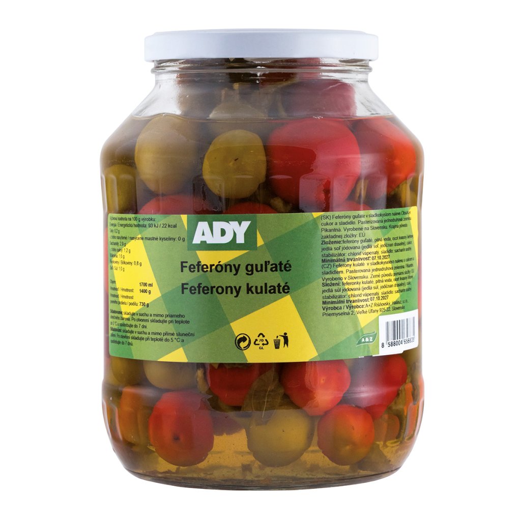 Produkt ADY Feferony kulaté 1,4 kg Vás nezklame.