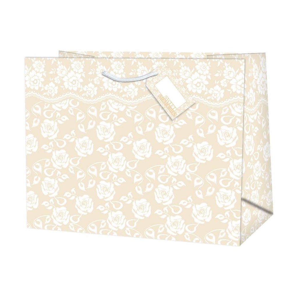 Báječná taška pro jednoduché a efektivní zabalení dárků. Tato dárková papírová taška je vyrobena z kvalitního a pevného papíru s vyztuženým dnem a pevnými uchy tvořenými z pletené šňůry. Rozměry: 19 x 10,2 x 23 cmDoplňkové parametry