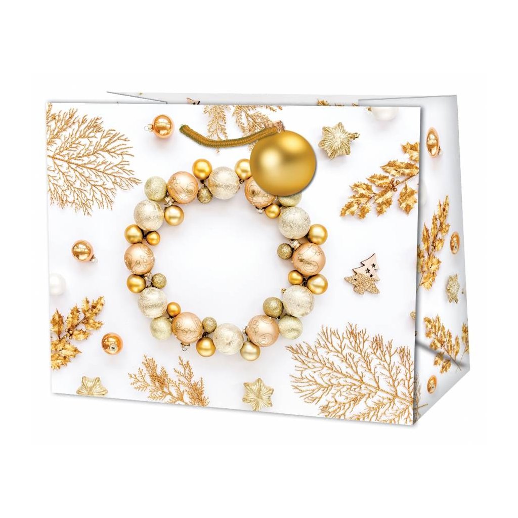 Báječná taška pro jednoduché a efektivní zabalení dárků. Tato dárková papírová taška je vyrobena z kvalitního a pevného papíru s vyztuženým dnem a pevnými uchy tvořenými z pletené šňůry. Rozměry: 26,7 x 13,7 x 32,8 cmDoplňkové parametry