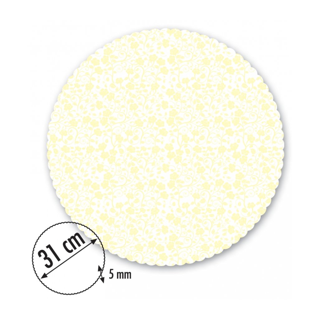 Alvarak dortová podložka Bílá se žlutým dekorem 31 cm + 5x krajková bílá podložka