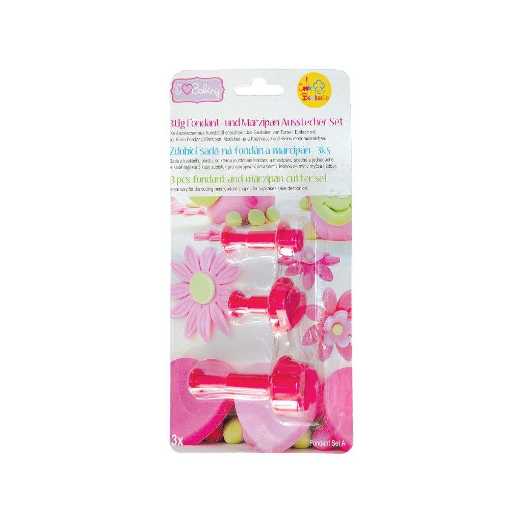 Sada z kvalitního plastu, se kterou je zdobní fondánu a marcipánu snadné a především jednoduché. V sadě najdete 3 kusy vykrajovátek pro vykrajování originálních tvarů. které pak lze podle vkusu dále zdobit a dekorovat.
