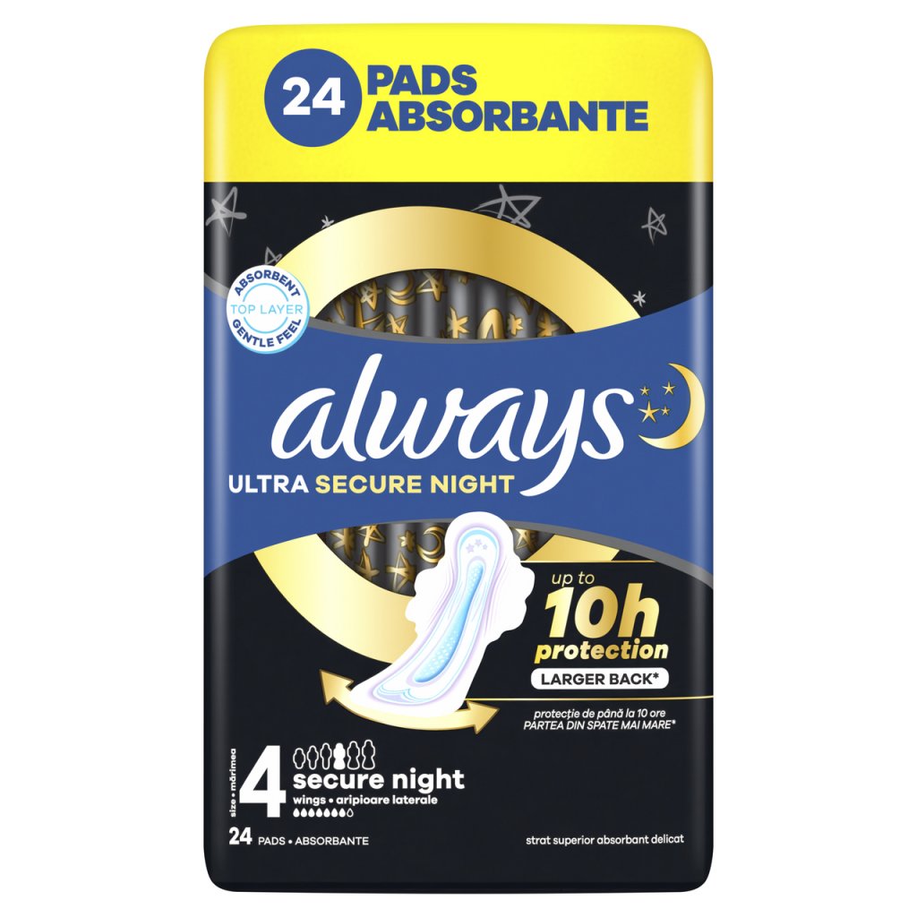 Produkt always Ultra Secure Night dámské vložky 24 ks Vás nezklame.