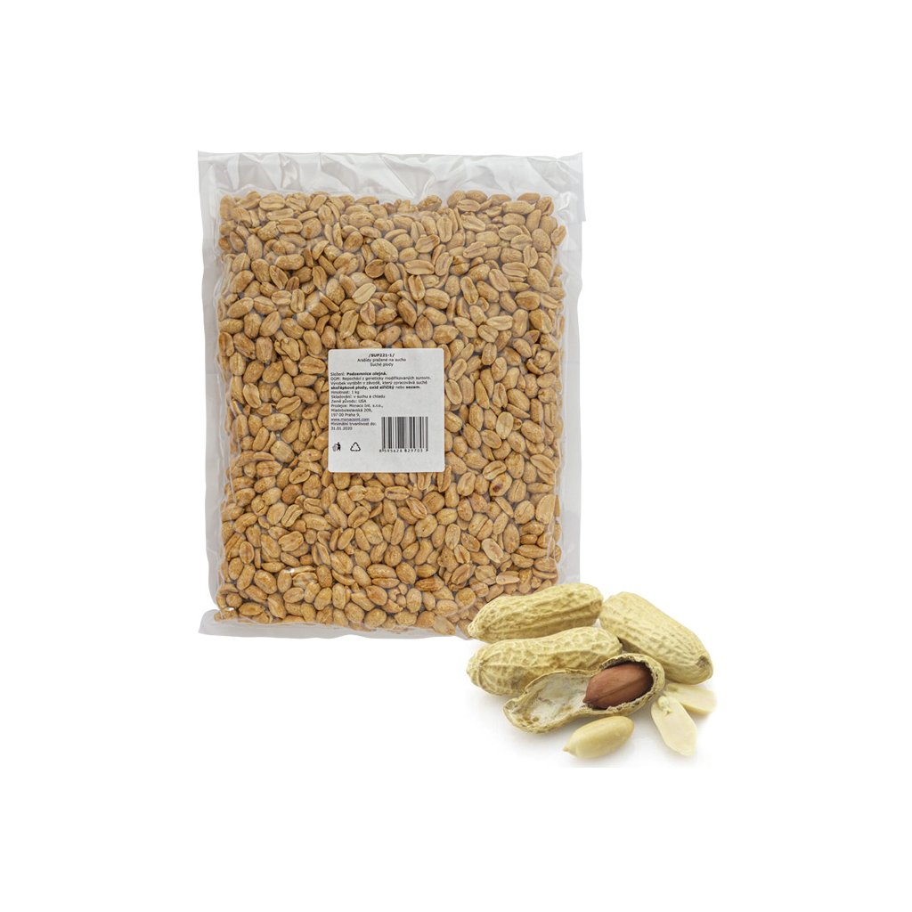 Opražené arašídy na sucho. Vakuové balení garantuje čerstvost a krokantnost pražených arašídů.