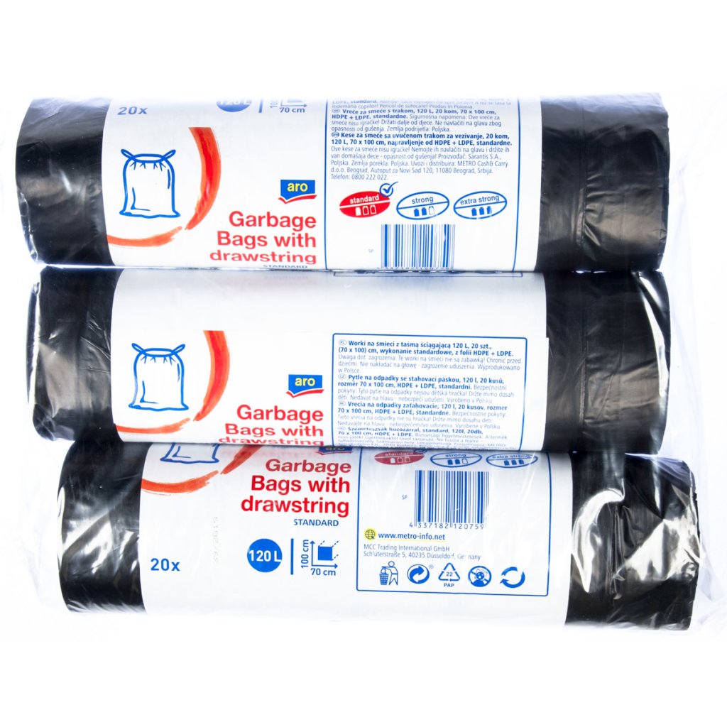 Produkt aro Pytel na odpad zatahovací Standard 120 l 3 x 20 ks Vás nezklame.
