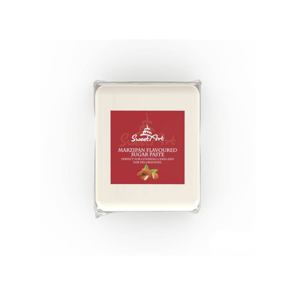 cukr (EU)(min. 66%), rostlinný olej (palmový), modifikovaný škrob (E1422), glukózový sirup, voda, zvlhčující látka: glycerol (E422), zahušťovadlo: xanthanová guma (E415), marcipánové aroma (min. 0,09%), konzervant: sorban draselný (E202), kyselina: kyselina citronová (E330)Cukrářské potřeby a suroviny pro sladké pečení.