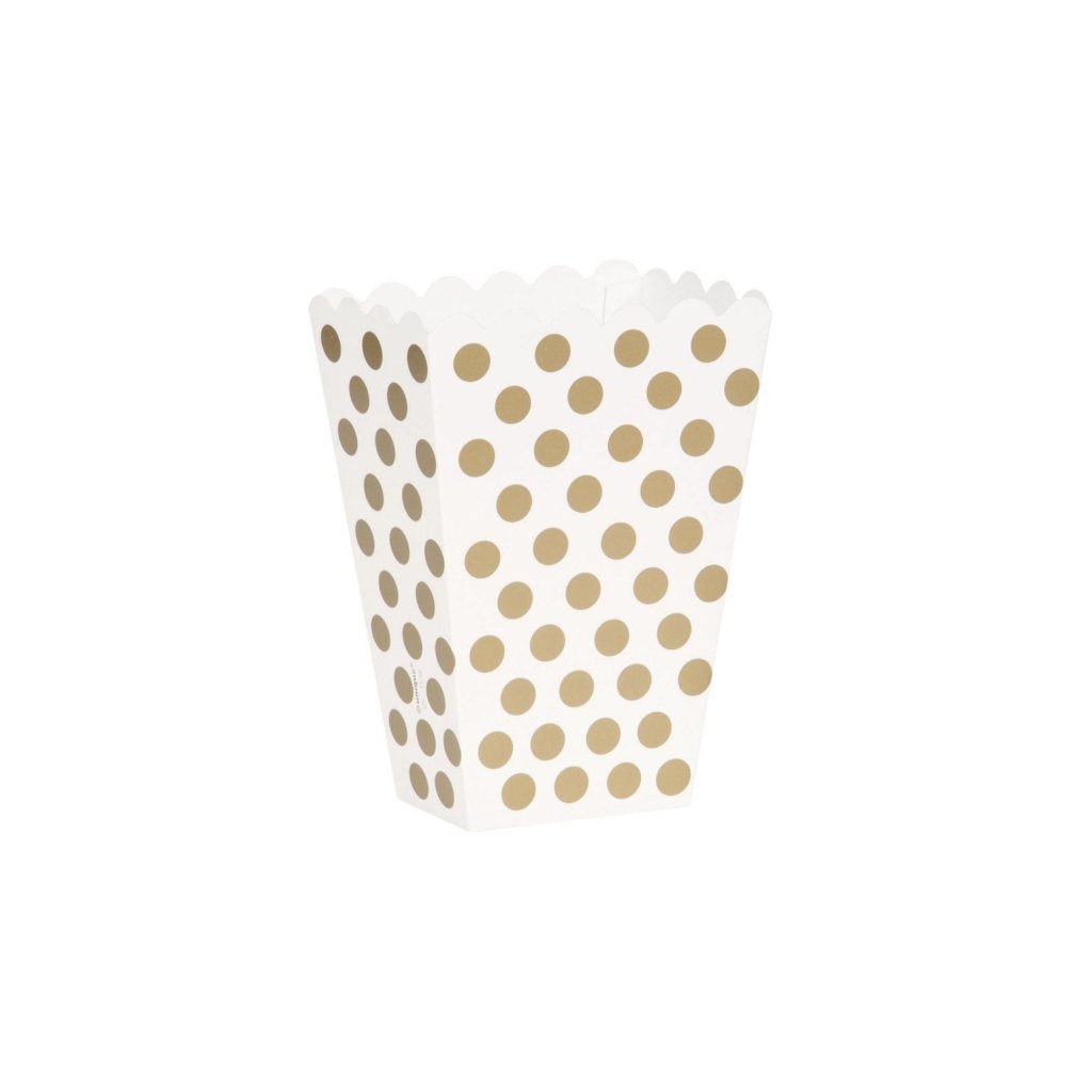 Papírové krabičky na popcorn v krásném designu se zlatými puntíky . Balení obsahuje 8 krabiček o výšce 14 cm. Krabičky jsou vyrobeny z materiálu, který je odolný proti mastnotě, takže se nemusíte bát prosakování oleje z čerstvě připraveného popcornu. Jsou také ekologické, a proto šetrné k životnímu prostředí. Rozměr: 14 x 9,5 cmObjem: cca 700 mlMateriál: PapírBalení: 8 ksDoplňkové parametry
