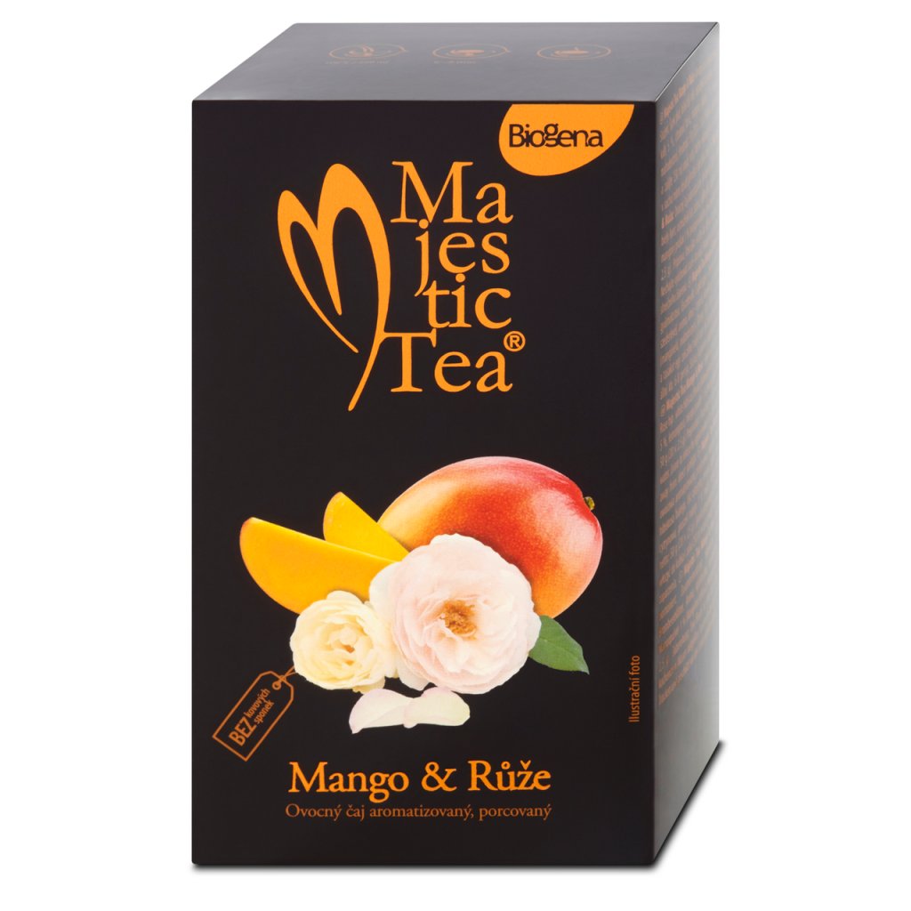 Produkt Biogena Majestic Tea mango-růže aromatizovaný čaj porce 50 g (20 x 2,5 g) Vás nezklame.