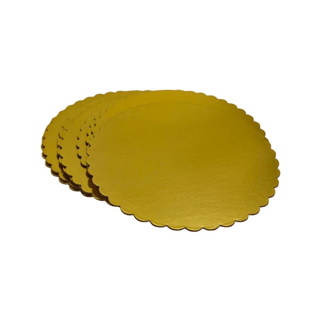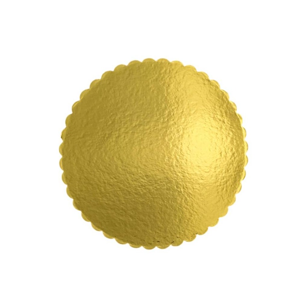 Velmi kvalitní nepřemastitelná, lepenková, kruhová podložka s vlnkový okrajem pod dorty a jiné cukrářské výrobky laminovaná zlatou fólií. Tloušťka: 2 mm Průměr: 30 cmDoplňkové parametry