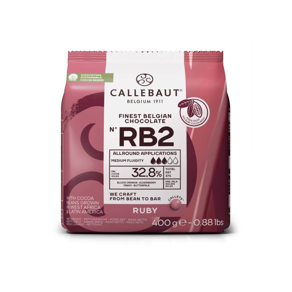 Po hořké, mléčné a bílé čokoládě je ruby čokoláda nejporozuhodnější objev za posledních 80 let. Oslnivý zázrak matky přírody, který přináší naprosto nový chuťový zážitek a unikátní barvu. Zrozen z rubínového kakaového bobu, bez přidaných barviv, bez přidaných ovocných příchutí. Ruby RB2 posouvá požitek na novou úroveň. To vše díky intenzivnější, ovocnější chuti a štiplavými, kyselými tóny než kterákoli ruby čokoláda před ní. Ruby RB2 má rovněž intenzivnější, jiskřivější barvu. Doporučujeme používat ruby ??RB2 co nejvíce v její čisté podobě, ale díky tekutosti (značeno 3 kapkami) je vhodná pro širokou škálu aplikací. Složení: cukr, kakaové máslo, sušené odstředěné mléko, kakaová hmota, regulátor kyselosti kyslina citronová, emulgátor sójový lecitin Obsah kakaové sušiny min. 32,8%. Nutriční hodnoty ve 100 g: energie 2377 kJ/568 kcal, tuky 37 g (z toho nasycené 22 g), sacharidy 51 g (z toho cukry 51 g), bílkoviny 6,3 g, sůl 0,2 gDoplňkové parametry