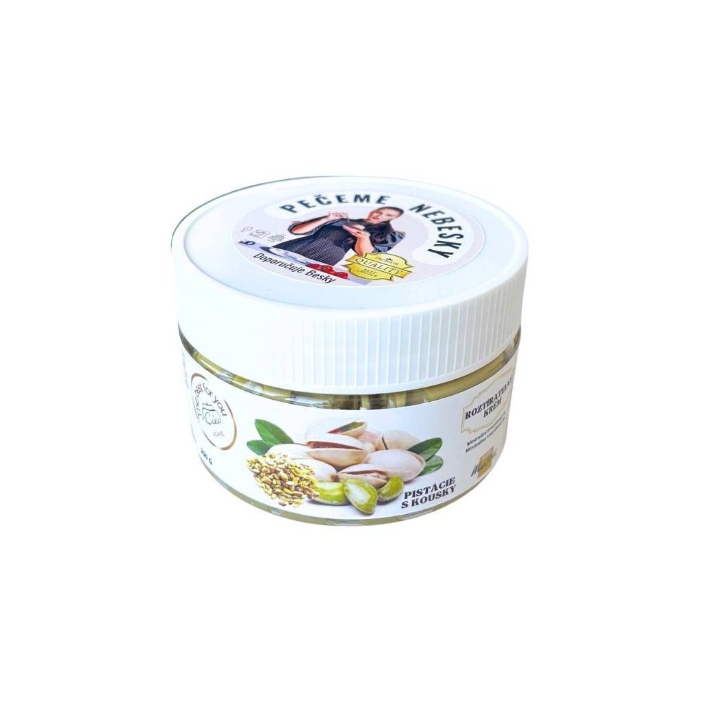 Složení: cukr, rostlinné oleje a tuky (slunečnicový, palmový), sekané pražené pistácie 15%, pistácie 12,5%, sušené odstředěné mléko, sušená syrovátka, laktóza, barviva antokyany, kurkumin, emulgátor lecitiny, přírodní aroma. Může obsahovat stopy ostatních skořápkových plodů. Nutriční hodnoty ve 100 g: energie 2391 kJ/574 kcal, tuky 38 g (z toho nasycené 9,5 g), sacharidy 47 g (z toho cukry 46 g), bílkoviny 9,7 g, sůl 0,28 gDoplňkové parametry