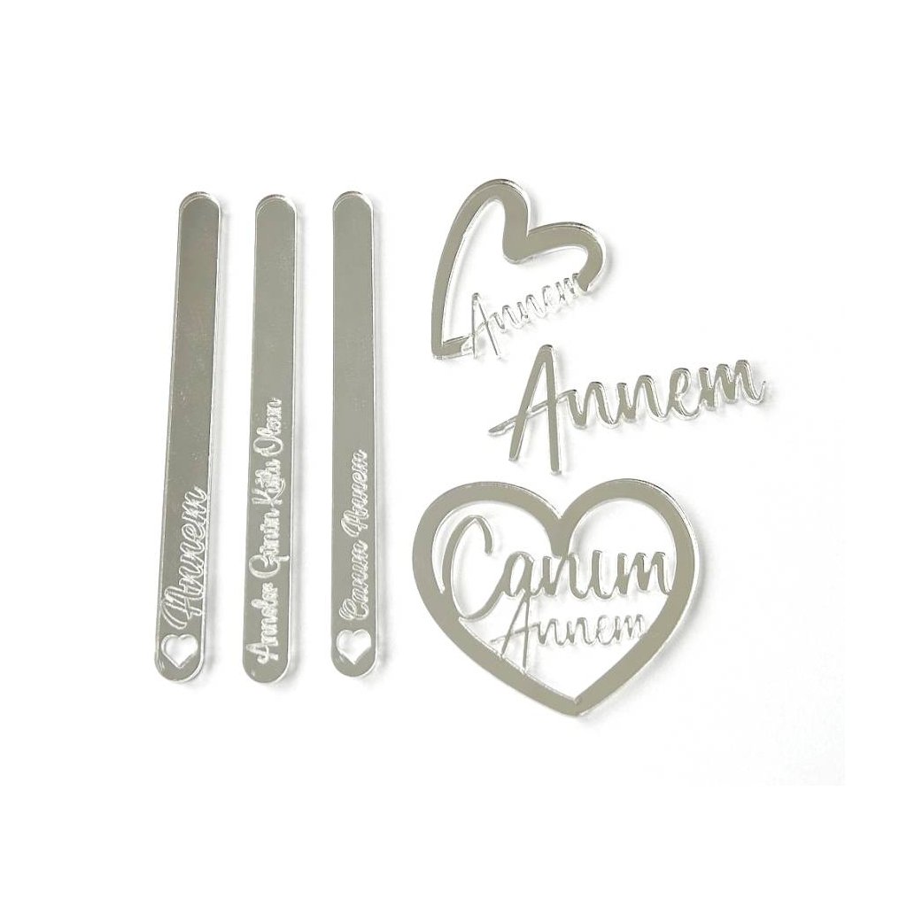 Cesil Akrylové špejle na nanuky stříbrné Den matek (3 špejle + 3 tvary) ♡
