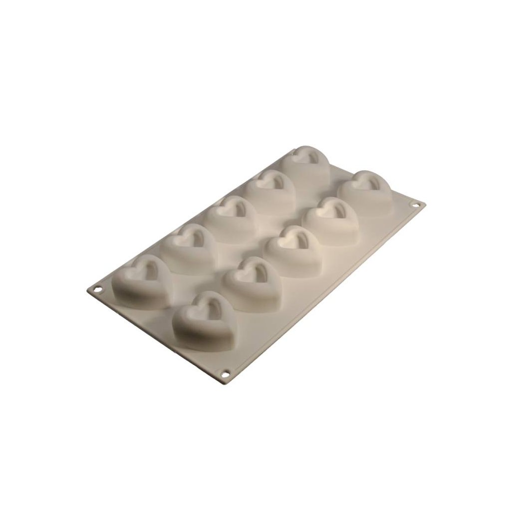 Forma na tvorbu slaných nebo sladkých italských semifreddo dezertů. Lze také použít na bavarois dorty, zákusky, zmrzliny atd. Tato forma je vhodná do trouby, lednice, mrazáku a myčky nádobí. Teplotní odolnost: od -60°C do +230°C Rozměr jednoho srdíčka: 4,8 x 5,4 cm Objem jednoho srdíčka: 45 mlDoplňkové parametry
