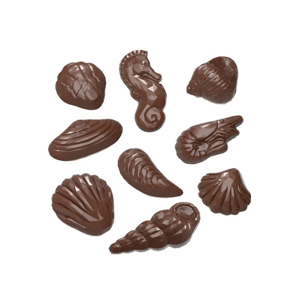 Rozměr formy: 27,5 x 13,5 x 2,4 cm Rozměr pralinek: 3 - 5,2 cm Materiál: polykrabonát Výroba čokoládových bonbonů je velice jednoduchá. Při výrobě plných čokolád nalijeme do formy čokoládovou hmotu, povrch srovnáme cukrářskou kartou a necháme ztuhnout. Pokud chceme vyrábět plněné bonbony, musíme nejdříve vyrobit tzv. skořápku, to představuje nanesení čokolády na boky tvarovné formy, dáme do mrazáku podchladit a pokud je vrstva tenčí, naneseme vrstvu druhou. Do vytvořené skořepiny vkládáme požadovanou náplň - marcipán, alkoholové náplně, oříškové nebo karamelové. Záleží jen na naší fantazii a chuti. Při plnění skořepiny nezapomeneme na ponechání prostoru na zavíčkování bonbonu – tj. zalití náplně další vrstvičkou čokolády. Formu opět vkládáme do chladu a po vytuhnutí vyklepneme.Doplňkové parametry