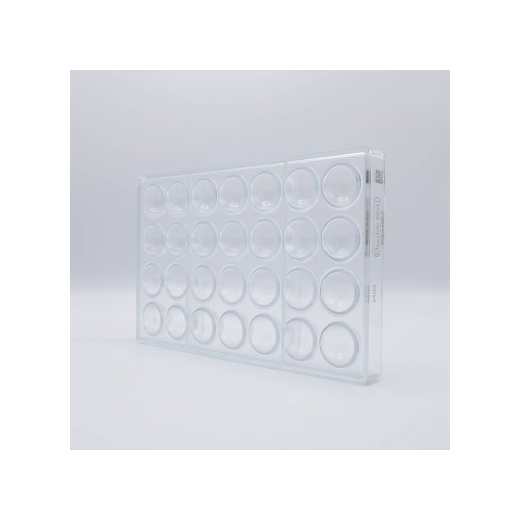 Rozměr formy: 27,5 x 17,5 x 2,4 cm Rozměr pralinky: 3 x 1,8 cm Materiál: polykrabonát Výroba čokoládových bonbonů je velice jednoduchá. Při výrobě plných čokolád nalijeme do formy čokoládovou hmotu, povrch srovnáme cukrářskou kartou a necháme ztuhnout. Pokud chceme vyrábět plněné bonbony, musíme nejdříve vyrobit tzv. skořápku, to představuje nanesení čokolády na boky tvarovné formy, dáme do mrazáku podchladit a pokud je vrstva tenčí, naneseme vrstvu druhou. Do vytvořené skořepiny vkládáme požadovanou náplň - marcipán, alkoholové náplně, oříškové nebo karamelové. Záleží jen na naší fantazii a chuti. Při plnění skořepiny nezapomeneme na ponechání prostoru na zavíčkování bonbonu – tj. zalití náplně další vrstvičkou čokolády. Formu opět vkládáme do chladu a po vytuhnutí vyklepneme.Doplňkové parametry