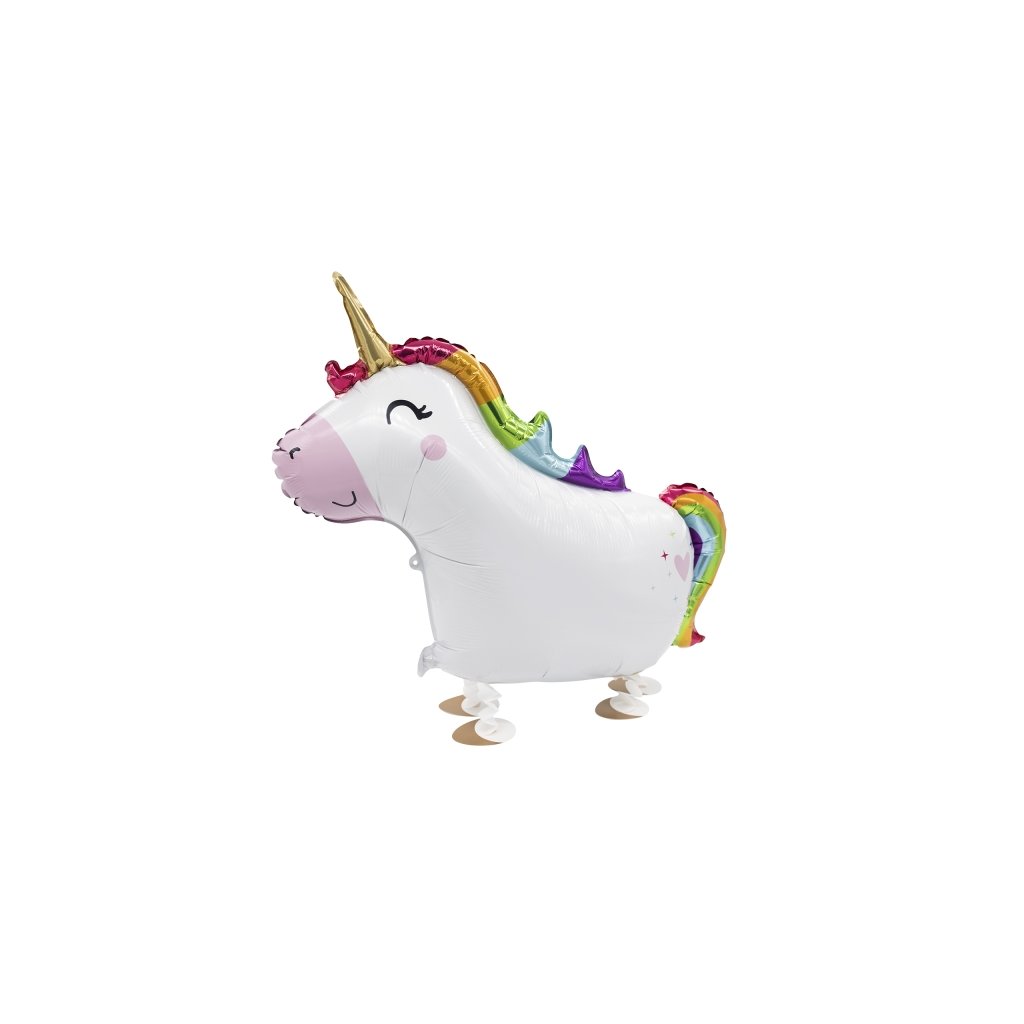 Tento chodící fóliový balonek ve tvaru veselého jednorožce přinese dětem spoustu radosti. Po naplnění héliem se balonek díky malým závažím na nožkách pohybuje po zemi, zatímco ho děti mohou vodit na přiloženém provázku jako svého kouzelného mazlíčka. Balonek je ideální na narozeninové oslavy, dětské párty i jako originální dárek. Navíc je opakovaně nafukovatelný, takže si děti užijí zábavu znovu a znovu. Rozměry před nafouknutím: cca 81 x 62 cmRozměry po nafouknutí: cca 70 x 54 cmObjem balonku: cca 40 lMateriál: metalická fólieSamo uzávěr: AnoObchodní balení: AnoBalení: 1 ksNafukování: héliumDoplňkové parametry