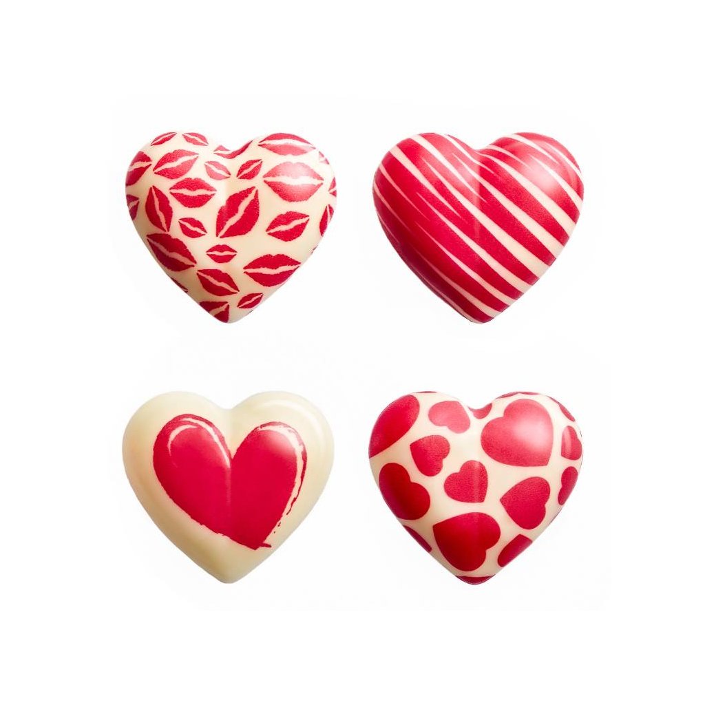 Čokoládová dekorace Srdíčko s růžovým potiskem Lovissimo (8 ks) ♡