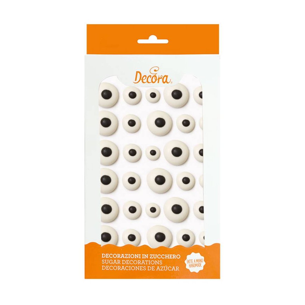 Cukrová dekorace ve tvaru očí pro dozdobení figurek či dortů a dalších zajímavých moučníků nejen na Halloween. V balení 30 ks.