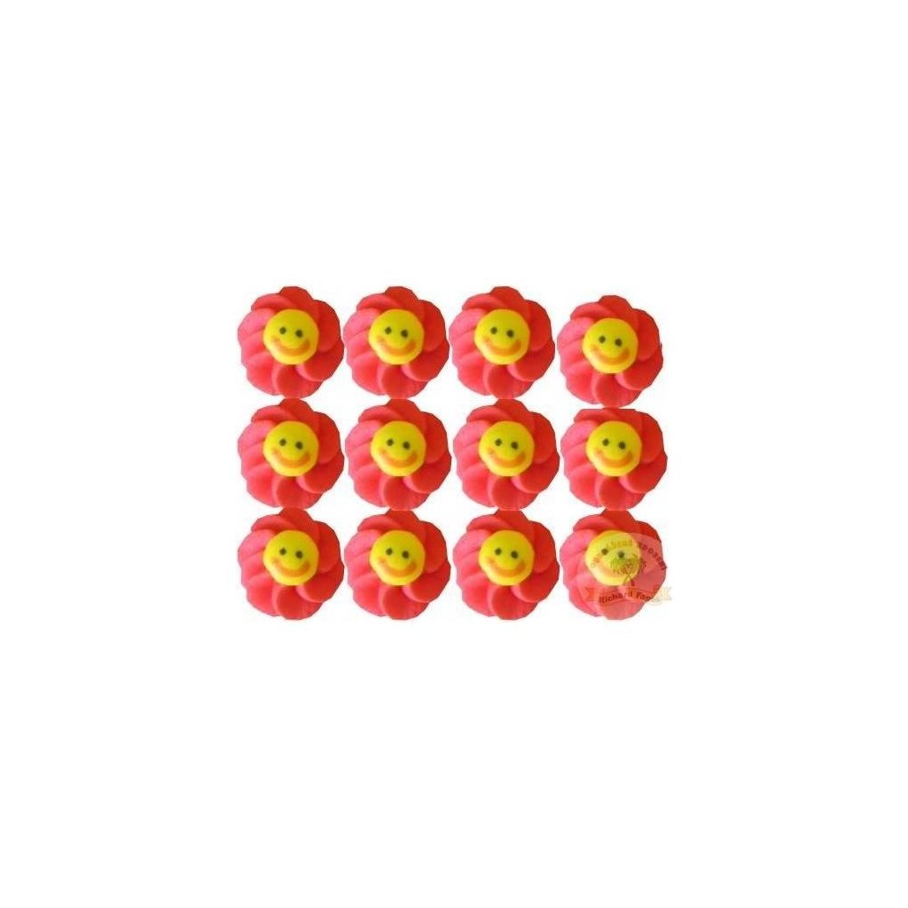 Cukrové dekorace sluníčko červené. V balení 12 ks.Doplňkové parametry