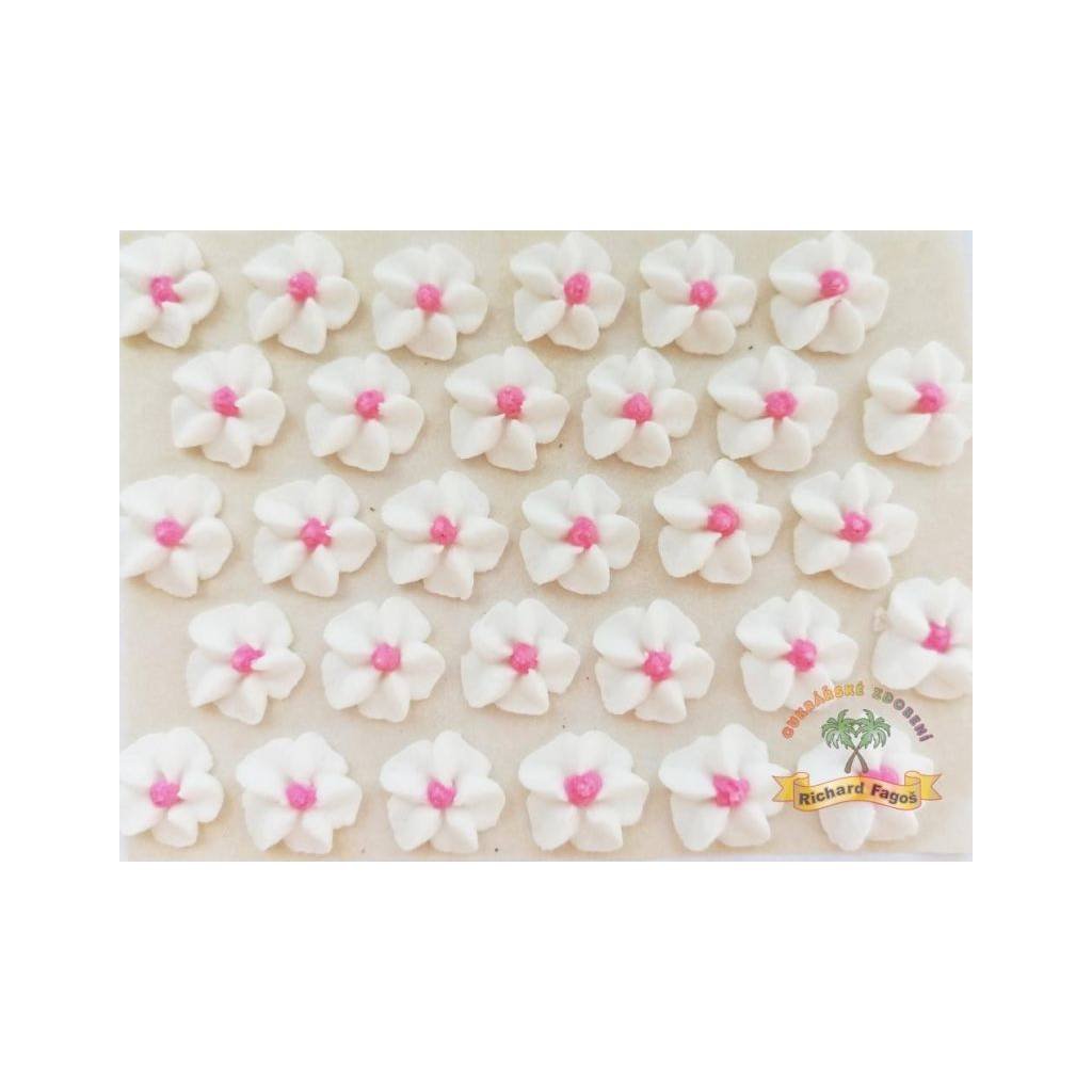 Cukrové květy bílé s růžovým středem na platíčku 30ks - Fagos