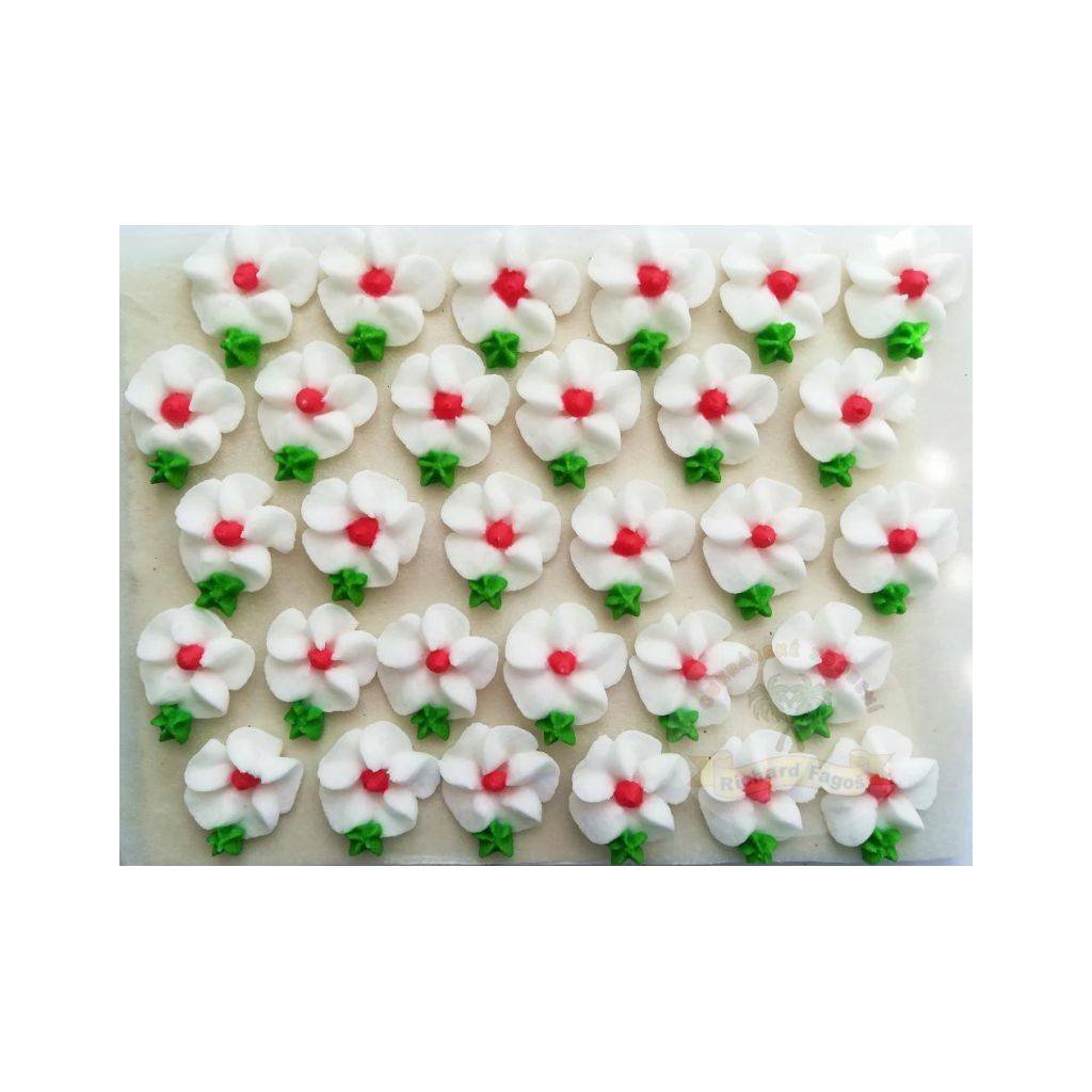 Cukrové květy bílé s červeným středem. Balení 30 ks.Doplňkové parametry
