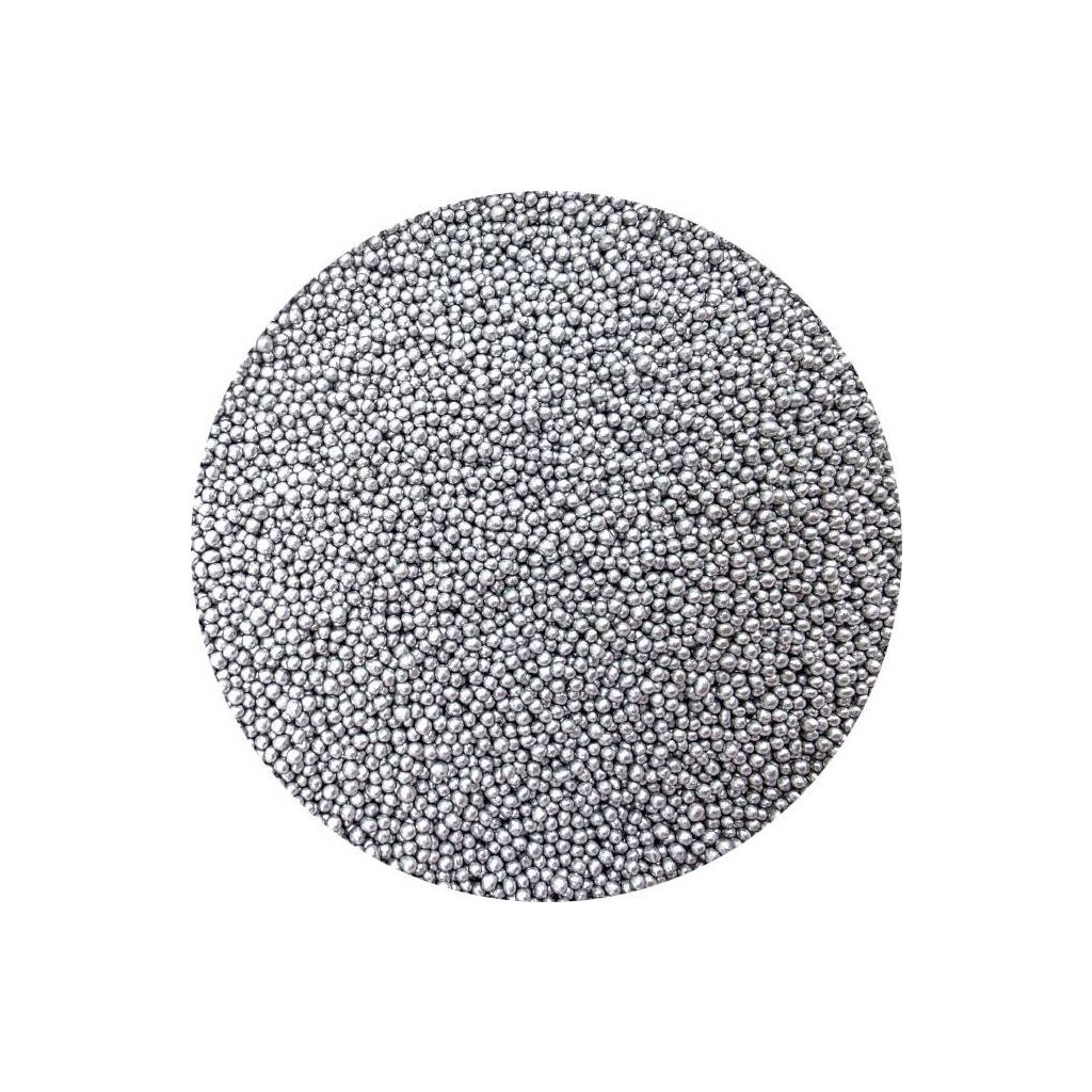 Cukrové perličky stříbrné metalické, velké 3-4 mm. Balení 80 g.Doplňkové parametry