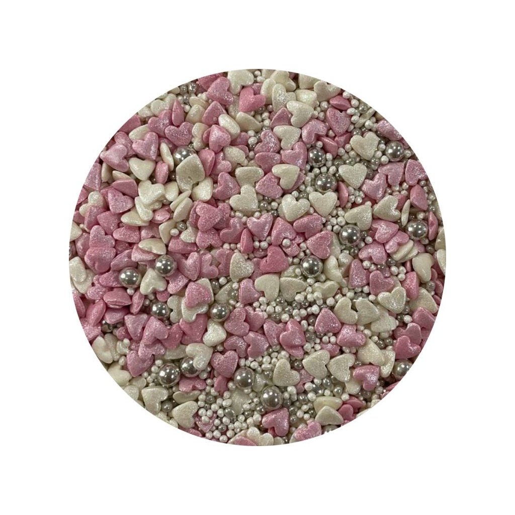 Produkt pro domácí cukráře: Cukrové zdobení bílé, stříbrné a růžové Touch of Love 80 g Cukrářská