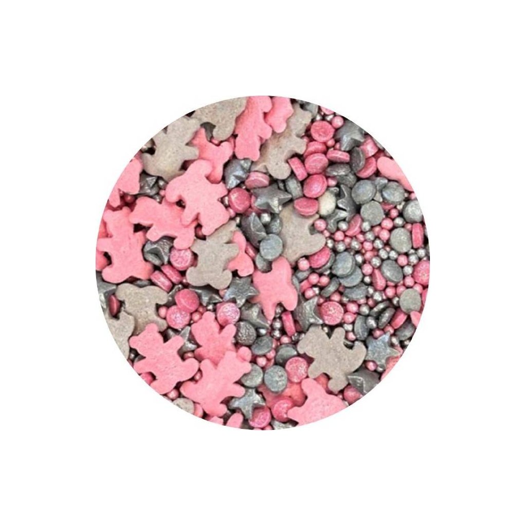 Cukrové zdobení růžovo-stříbrní medvídci 1kg - I LOVE CAKES | Skvělé pro Váš domácí dort
