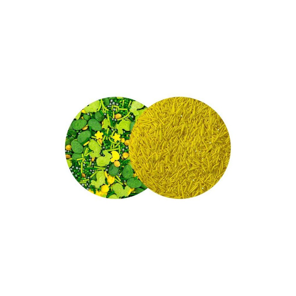 Cukrové zdobení žluté a zelené Spring Friends a tyčinky žluté (100 g) ▹