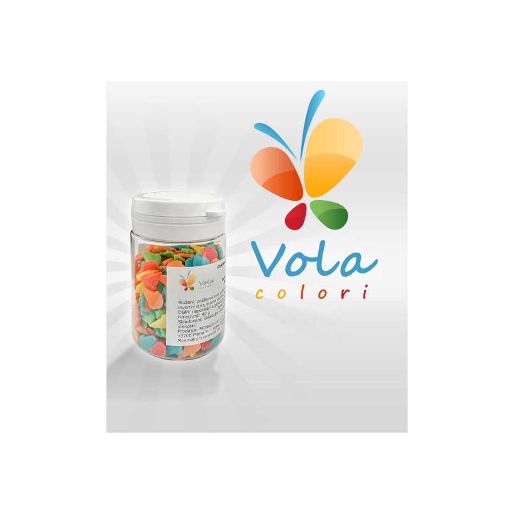 Složení: práškový cukr, palmový olej, voda, bramborová moučka, rýžová mouka, invertní cukr, aroma vanilka, barviva: E100, E120, E131.