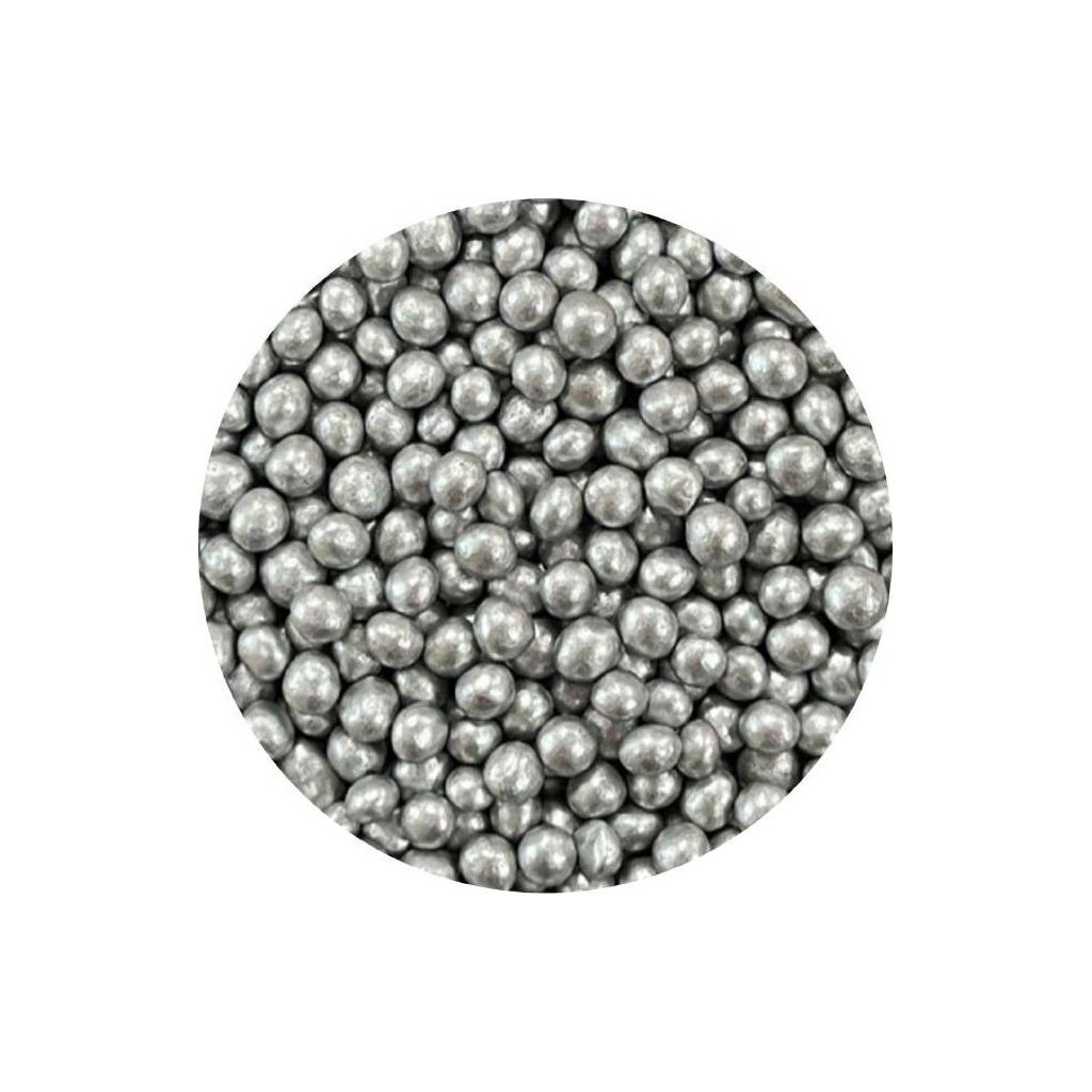 Cukrovo-rýžové perly stříbrné, velké 5 mm. Balení 1 kg.Doplňkové parametry