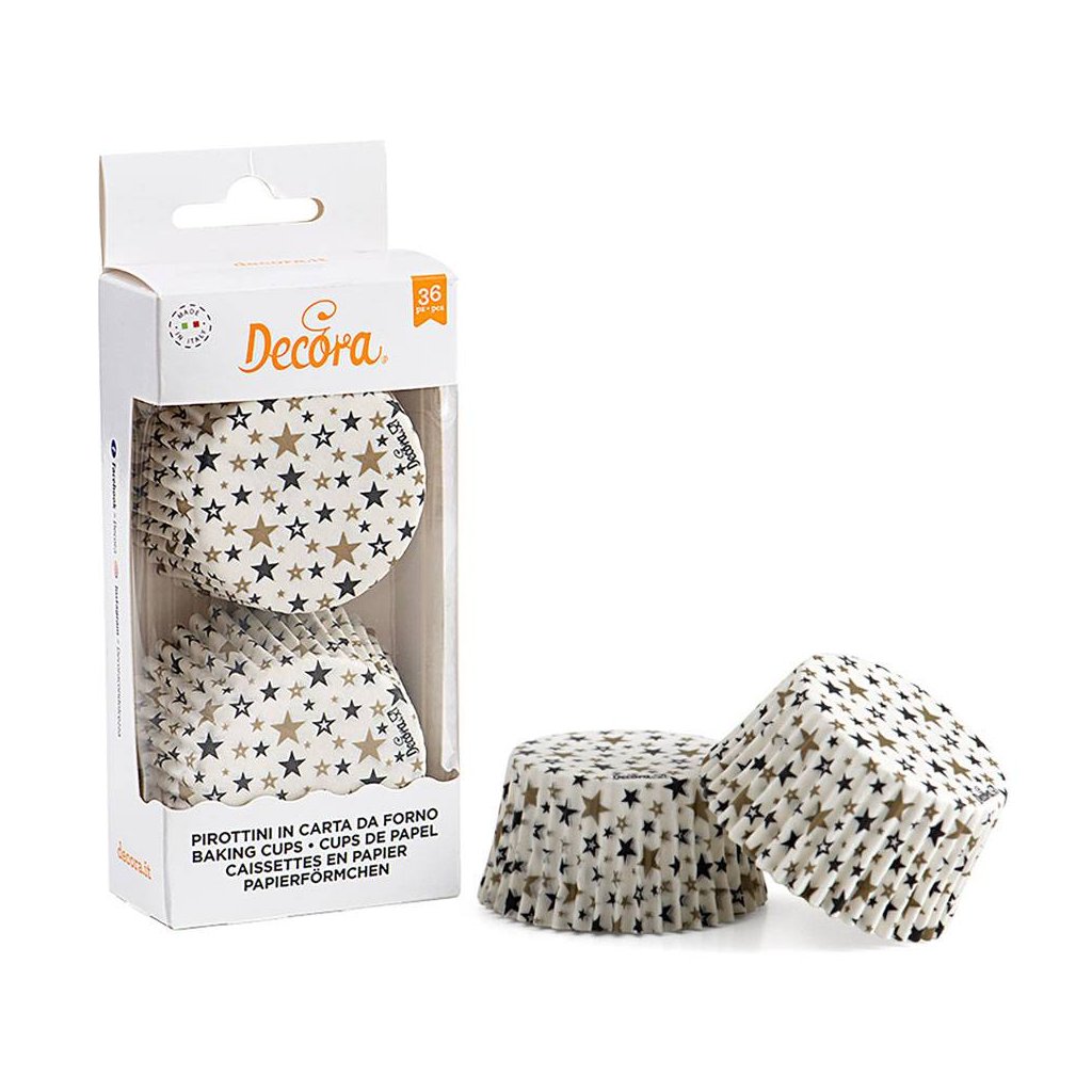 Decora košíčky na muffiny Bílé s černými a zlatými hvězdičkami (36 ks) ♡ | Cukrářské potřeby