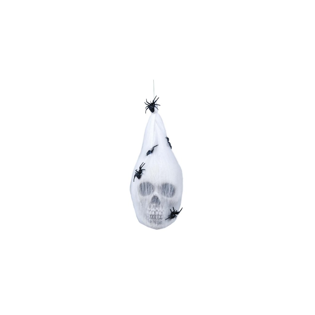 Pavučinový kokon s lebkou a pavouky je dokonalým hororovým doplňkem, který na první pohled vyděsí každého hosta. V bílých vláknech uvězněná lebka obklopená pavouky působí extrémně realisticky a dodá vaší výzdobě mrazivý efekt. Díky velikosti 25 cm se hodí k zavěšení na strop, dveře, strom nebo jako součást větší halloweenské dekorace. Skvěle se kombinuje s dalšími pavučinami, netopýry či kostlivci. Tento kokon se stane nepostradatelným prvkem pro vytvoření opravdu strašidelné atmosféry. Rozměry: 25 cmMateriál: Polyester, plastBarva: Bílá, černáBalení: 1 ksDoplňkové parametry