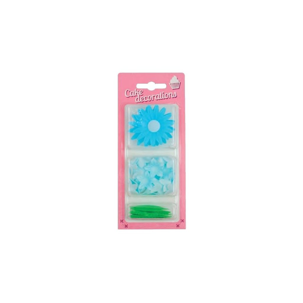 Dekorace z jedlého papíru Kopretiny a květiny mini modré s lístky (34 ks) ♡