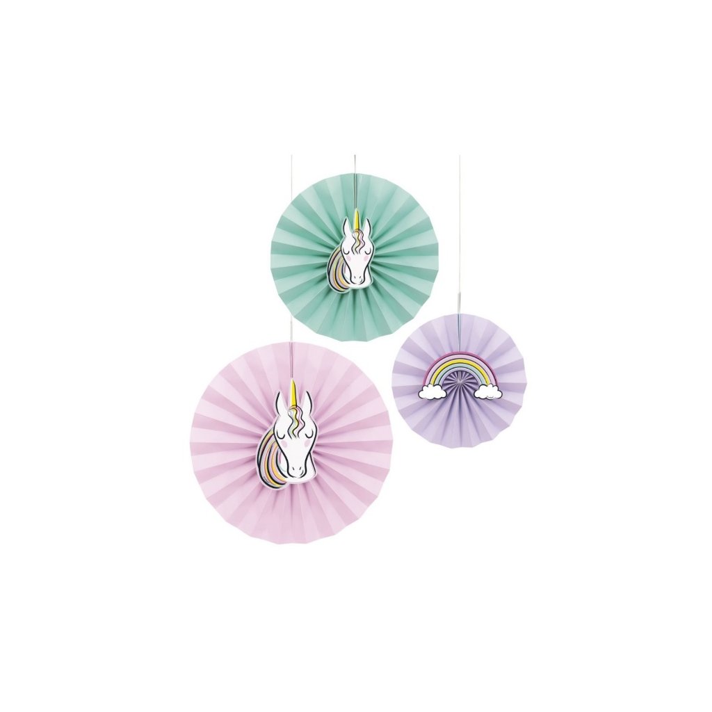 Jemné a poutavé závěsné rozety s motivem jednorožců a duhy. Papírové rozety ve velikostech od 20 do 30 cm v balení které obsahuje tři rozety. Určitě skvěle nedekoruje Vaši narozeninovou oslavu. Materiál: PapírRozměry: 20 až 30 cmBalení: 3 ksDoplňkové parametry