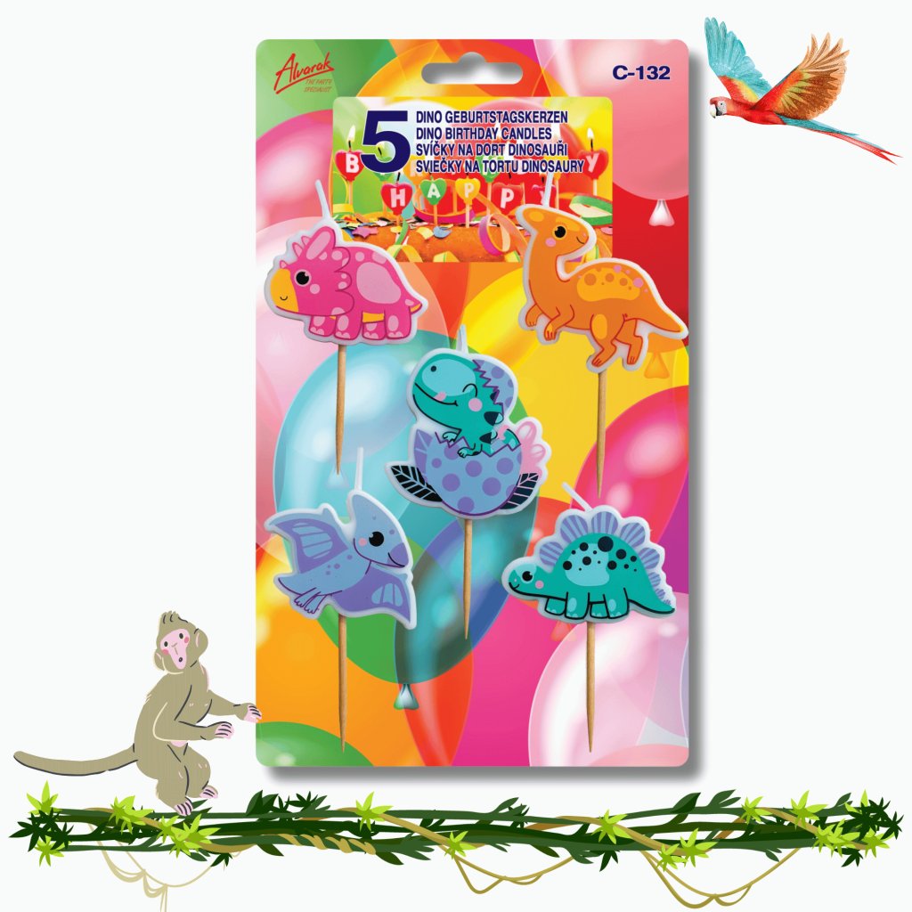 Narozeninová svíčka na dort, dinosaurus 5 ks