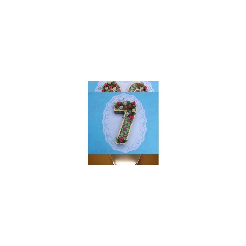 Forma se dnem. Dortová forma z pocínovaného plechu ve tvaru číslice. Výška cca 34 cm. Cena za 1 ks.