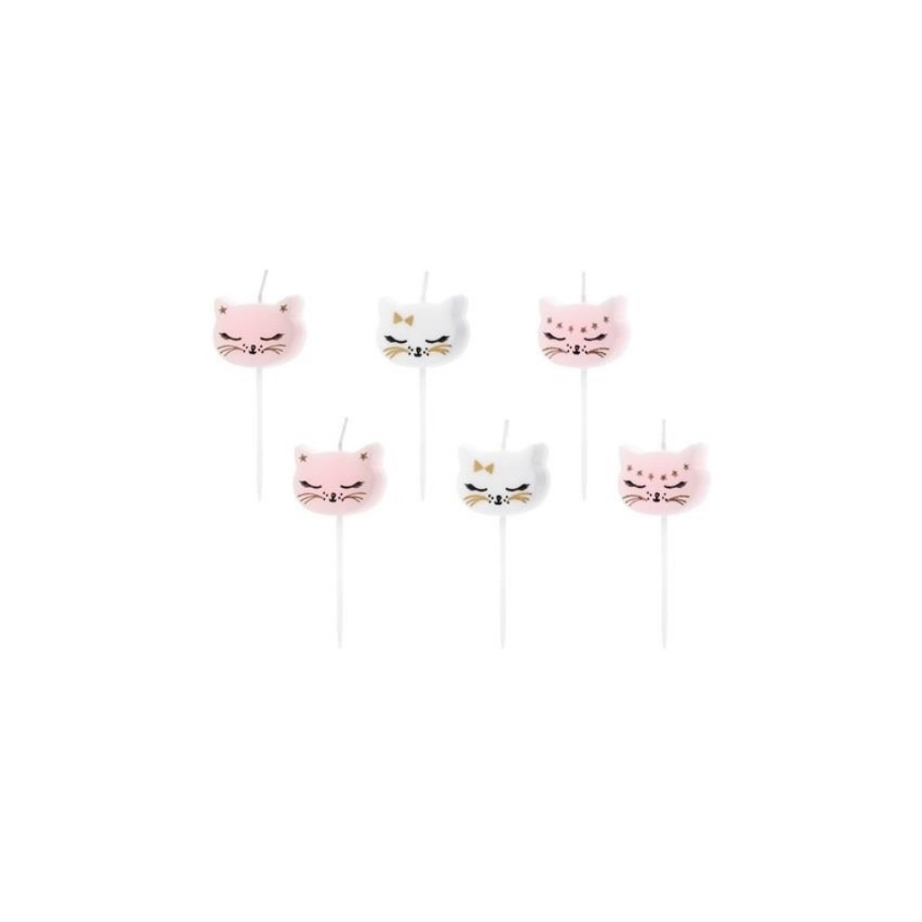 Dortové svíčky ve tvaru hlavy na tématickou party s kočičkami, bude ideální dekorací dortu na oslavě nebo tématické party.