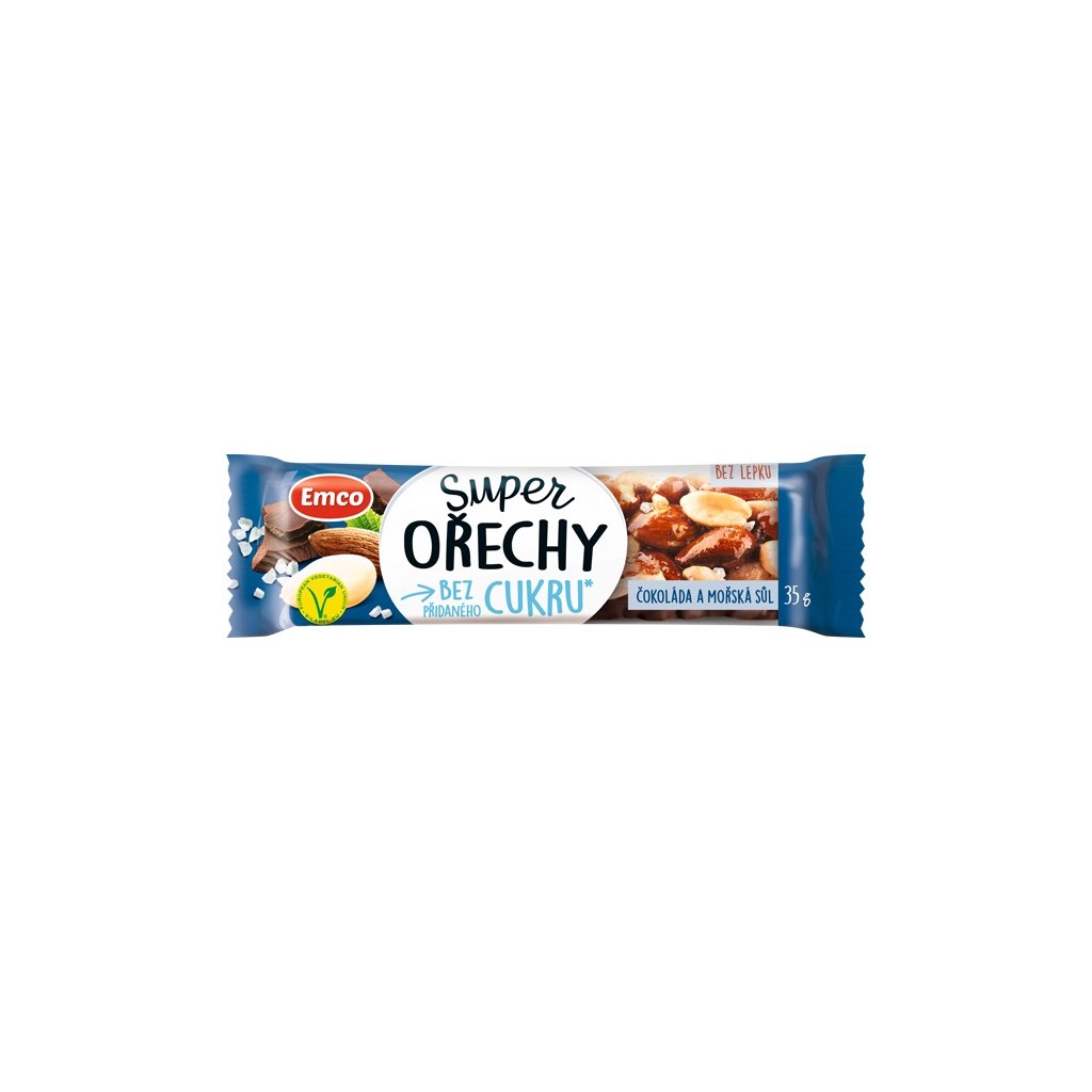 Produkt Emco Tyčinka Super ořechy Čokoláda a mořská sůl bez lepku 35 g Vás nezklame.
