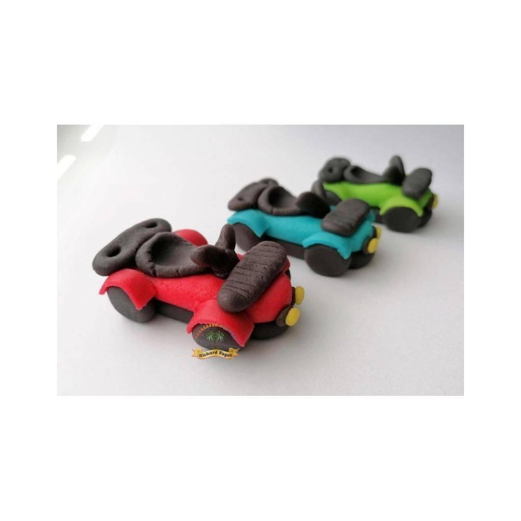 Figurka na dort čtyřkolka červené barvy. Vyrobena z kokosové hmoty.Doplňkové parametry