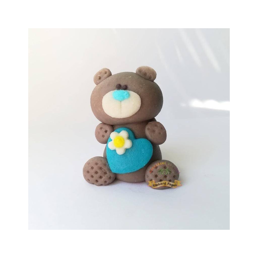 Figurka na dort medvídek šedý s modrým srdíčkem 5cm z kokosové hmoty - Fagos