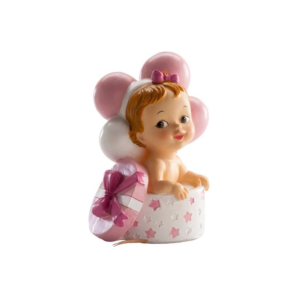 Figurka na dort miminko holčička v krabičce. Výška 10,5cm.Doplňkové parametry