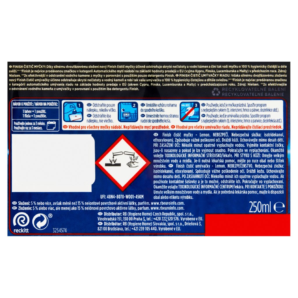 Produkt finish Lemon čistič myčky 2 x 250 ml Vás nezklame.
