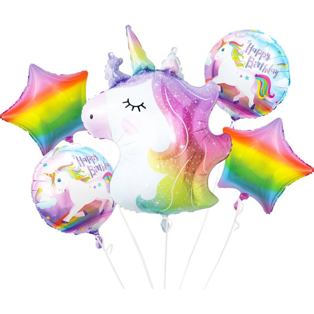 Cukrářské potřeby a suroviny pro sladké pečení.Produkt pro domácí cukráře: Fóliové balónky - sada jednorožec, narozeniny, 5 ks - Godan ,