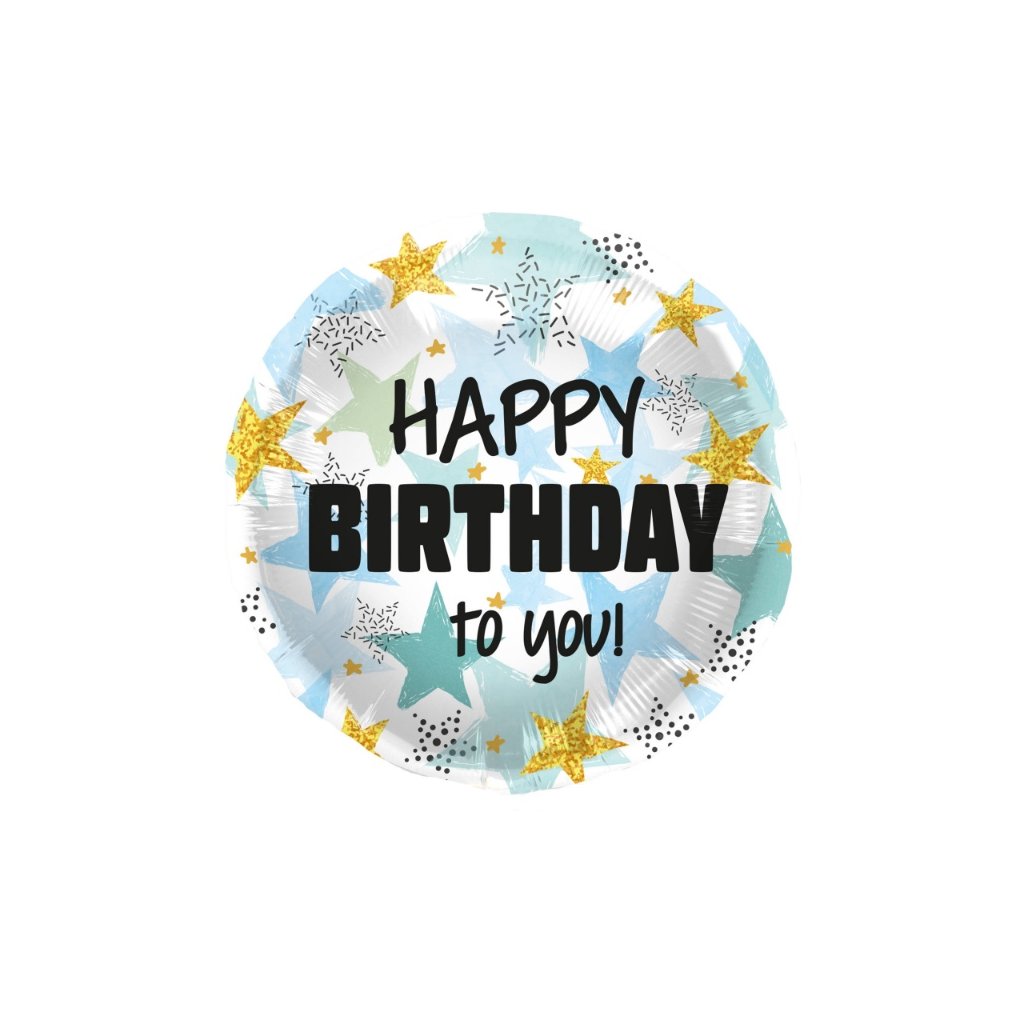 Tento foliový balónek s oboustranným potiskem a nápisem Happy Birhday To You, je perfektní dekorační doplněk na oslavu narozenin nebo jako výzdoba party. Hodí se také jako malý dárek a lze k němu přidat další balonky a vytvořit létající balónkový buket. Balonek lze nafouknout vzduchem (brčko není součástí balení) i heliem přes speciální samouzávěr, který zajistí aby se balónek nevyfukoval.Při nafouknutí heliem vydrží plně nafouklý cca 5 až 8 dní, poté se začne pomalu vyfukovat. Balonek je vyroben z recyklovatelných materiálů a je 100% recyklovatelný. Velikost před nafouknutím: 50 x 50 cmVelikost po nafouknutí: 45 x 45 cmMateriál: Kovová fólieObjem: cca 16 lBalení: 1 ksObchodní balení: AnoDoplňkové parametry