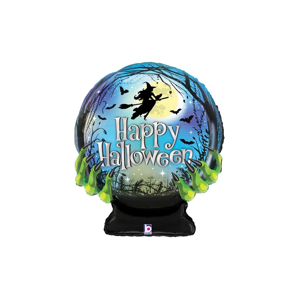Vytvořte mrazivou atmosféru na své halloweenské oslavě s originálním fóliovým balonkem ve tvaru koule s motivem čarodějnice. Balonek zdobí detailní ilustrace s měsícem v úplňku, poletujícími netopýry a zelenými drápy, které drží kouzelnou kouli s nápisem Happy Halloween. Tento design se stane středobodem každé strašidelné výzdoby. Ideální jako samostatná dekorace, součást balónkové girlandy nebo jako doplněk fotokoutku. Lze jej nafouknout vzduchem i héliem, přičemž při plnění héliem se krásně vznáší a vydrží několik dní plně nafouknutý. Balonek má samo uzávěr, takže se snadno plní. Rozměry po nafouknutí: cca 58 × 68 cmRozměry před nafouknutím: 69 cm (27")Objem balonku: cca 80 lMateriál: metalická fólieSamo uzávěr: AnoObchodní balení: AnoBalení: 1 ksDoplňkové parametry