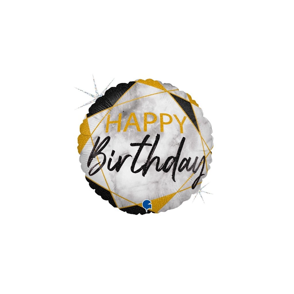 Foliový holografický balonek s nápisem Happy Birthday v mramorovém designu a černým zdobením, poslouží jako dekorace narozenin, luxusní narozeninové párty, jako výzdoba tematické organické girlandy a samozřejmě jako dárek k narozeninám. Balonek lze nafouknout klasicky vzduchem, ale i heliem. Jeho velikost je 45 x 45 cm. Balonek lze nafouknout vzduchem i heliem (brčko není součástí balení). Při nafouknutí heliem vydrží plně nafouklý cca 5 až 8 dní, poté se začne pomalu vyfukovat. Balonek je vyroben z recyklovatelných materiálů a je 100% recyklovatelný. Rozměry po nafouknutí: 35 x 35 cmRozměry před nafouknutím: 45 x 45 cmObjem balonku: cca 15 lObchodní balení: AnoBalení: 1 ks.Doplňkové parametry