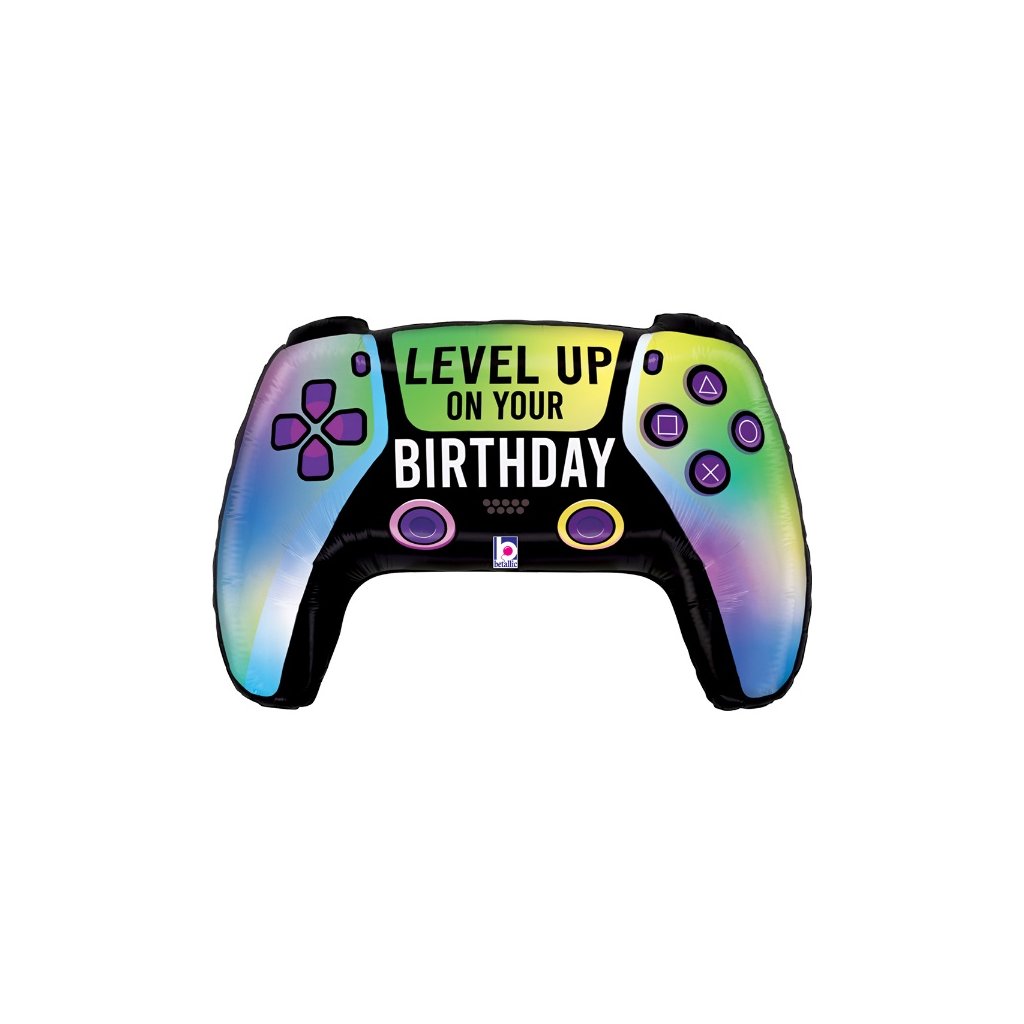 Fóliový balónek pro hráče, ve velikosti 75 x 49 cm. Balónek s nápisem Level up on your Birthday, udělá radost nejen jak dárek, ale i jako dekorace narozeninové oslavy. Doporučujeme kombinovat s dalšími balónky a párty doplňky s tématem Games. Balónek je vhodný pro nafukování vzduchem i héliem. Balónek je vhodný pro nafukování vzduchem i héliem. Po nafouknutí héliem zůstane plně nafouknutý cca 5 - 7 dní, poté se začne velice pomalu vyfukovat. Při naplnění vzduchem sice nelétá, ale zato vydrží nafouknutý měsíce. Rozměry po nafouknutí: 75 x 49 cmRozměry před nafouknutím: 85 x 59 cmObjem: cca 60 lMateriál: Metalická fólieBalení: 1 ksBaleno v obchodním obalu: AnoBalónek se samouzávěrem: AnoDoplňkové parametry