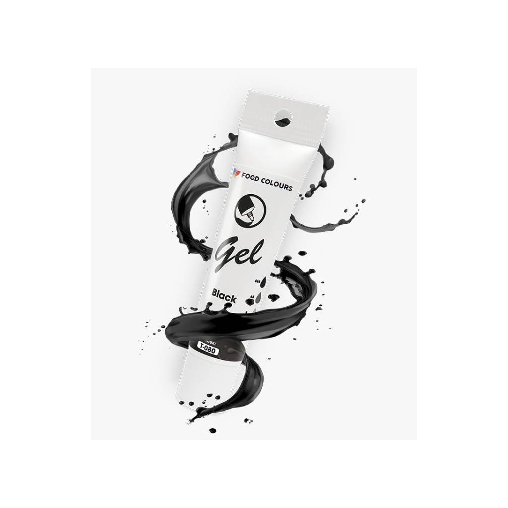 Díky vysoké koncentraci dosáhnete velice sytých barev přidáním malého množství barvy do hmoty. Vhodné do potahovacích hmot, marcipánu a krémů.Složení, co obsahuje produkt - Food Colours gelová barva tuba Black 30 g pro cukrářské účely:
