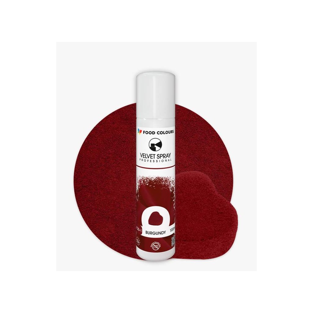 Sametová barva ve spreji ke zdobení vychlazených povrchů, např. máslových krémů, fondánových hmot, marcipánu, zákusků, čokolády a dalších. Složení: hnací plyn: E943a, E944, E943b, kakaový tuk, barviva E170, E120, E172, emulgátor E322 sójový lecitin, antioxidant E392Doplňkové parametry